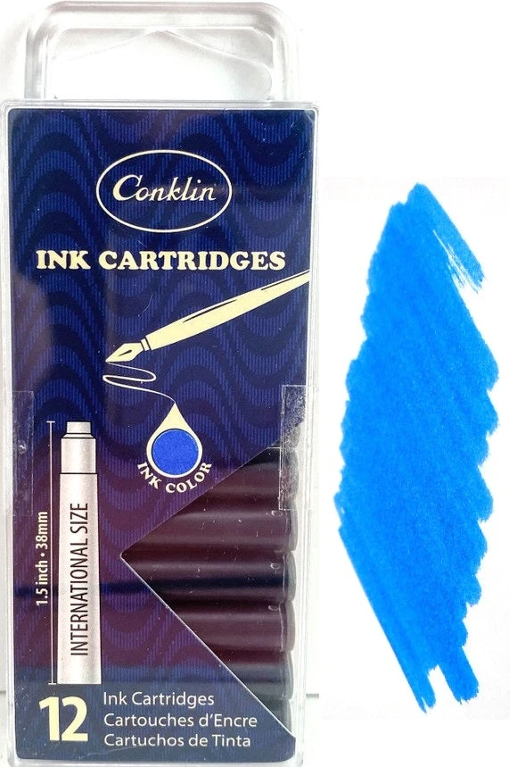 Conklin Fountain Pen Ink Cartridges, 12 Pack, Blue