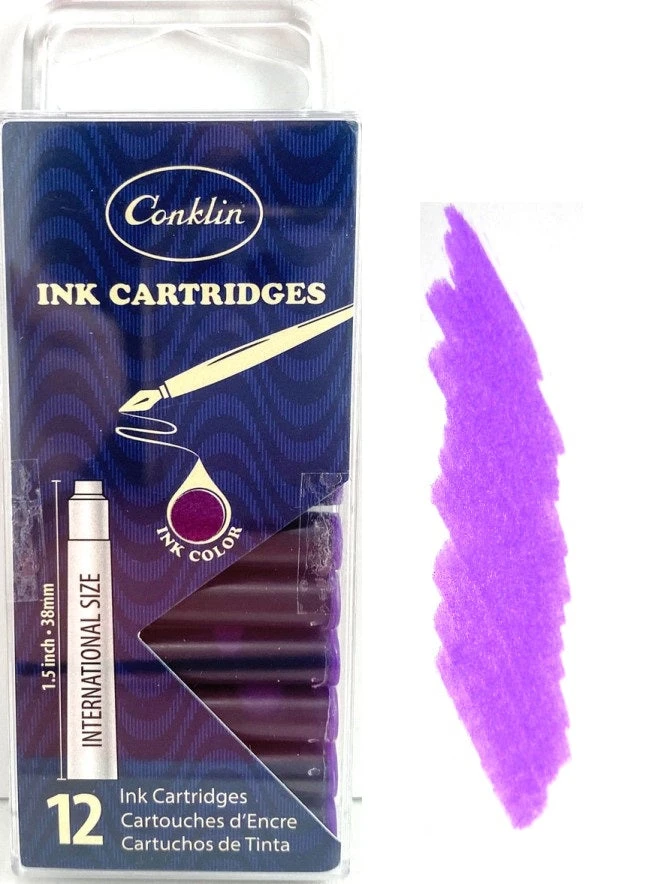 Conklin Fountain Pen Ink Cartridges, 12 Pack, Purple