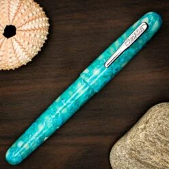 Made in Japan, The Celsus Fountain Pen is made from anodized aluminum, accented in brass plate and is lightweight. The pen features a non-slip rubberized grip section that prevents your fingers from slipping. The cap snaps into place.