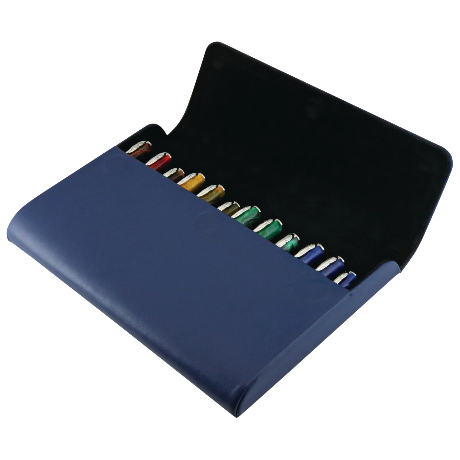 Pineider leather pen cases are crafted from the finest Italian leathers. These cases will hold up to 12 pens and have individual slots that protect the pens from each other.Â